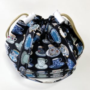 持ち手付きの両ひも巾着袋 ストッパーもあるのでしっかり閉じることができます。 マチはありません。 ● 幅21cm×高さ20cm(持ち手含まず)