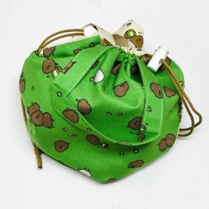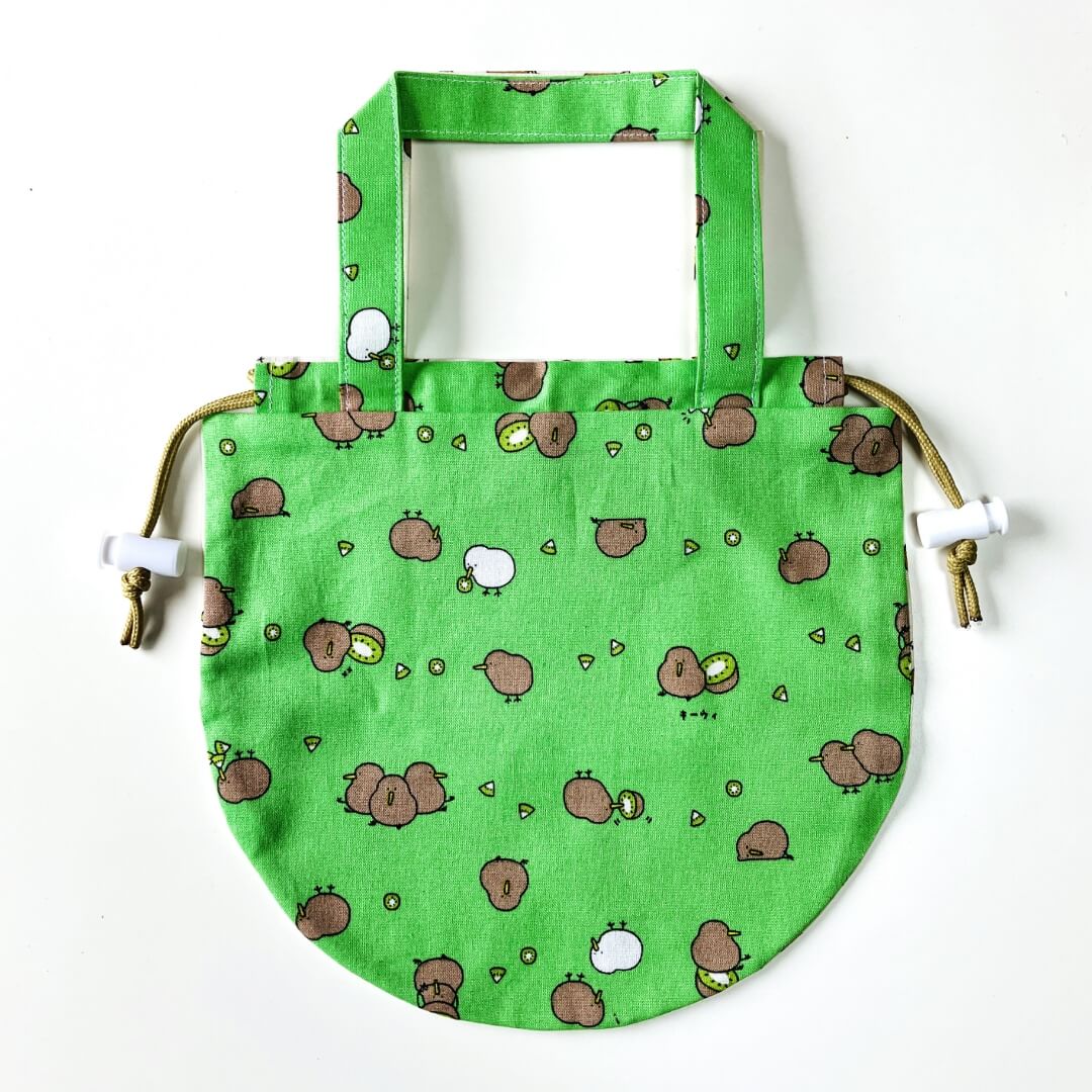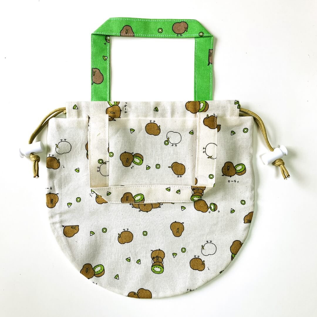 持ち手付きの両ひも巾着袋 ストッパーもあるのでしっかり閉じることができます。 マチはありません。 ● 幅21cm×高さ20cm(持ち手含まず)