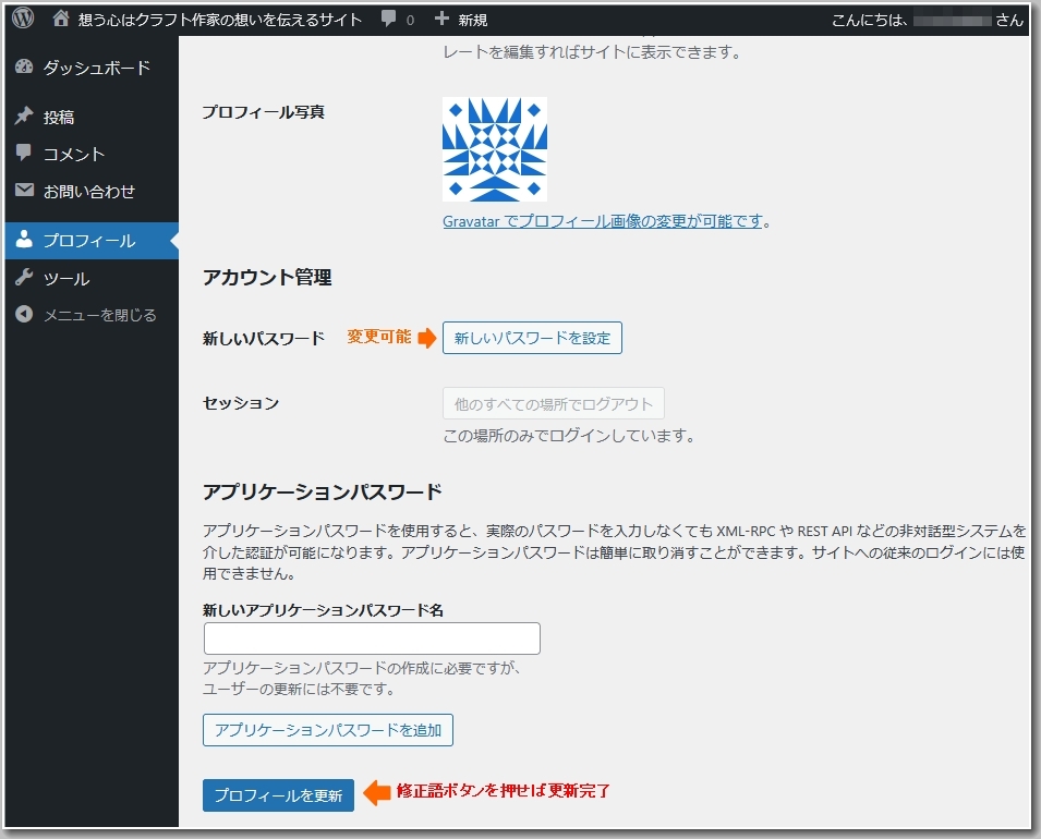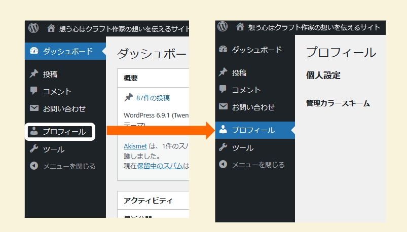 横のサイドメニューのプロフィールをクリックすると管理画面に入ります。
